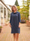 Kjole “Cinderella” med ¾ ærme, lommer og smuk hornknap Marine